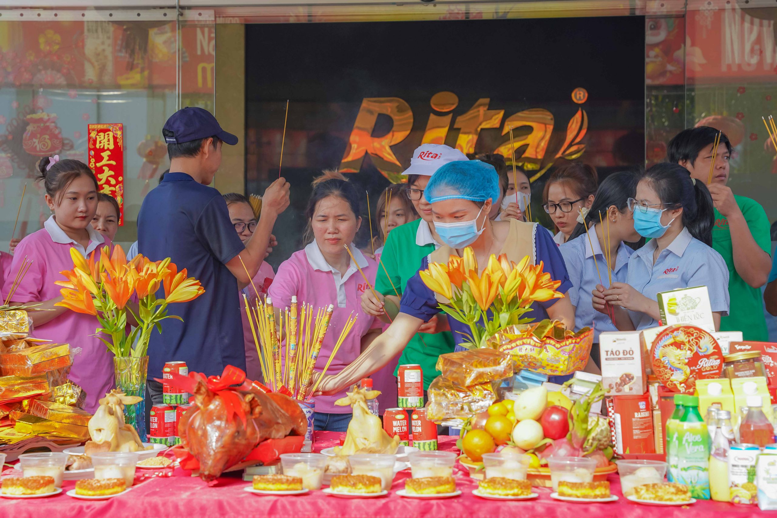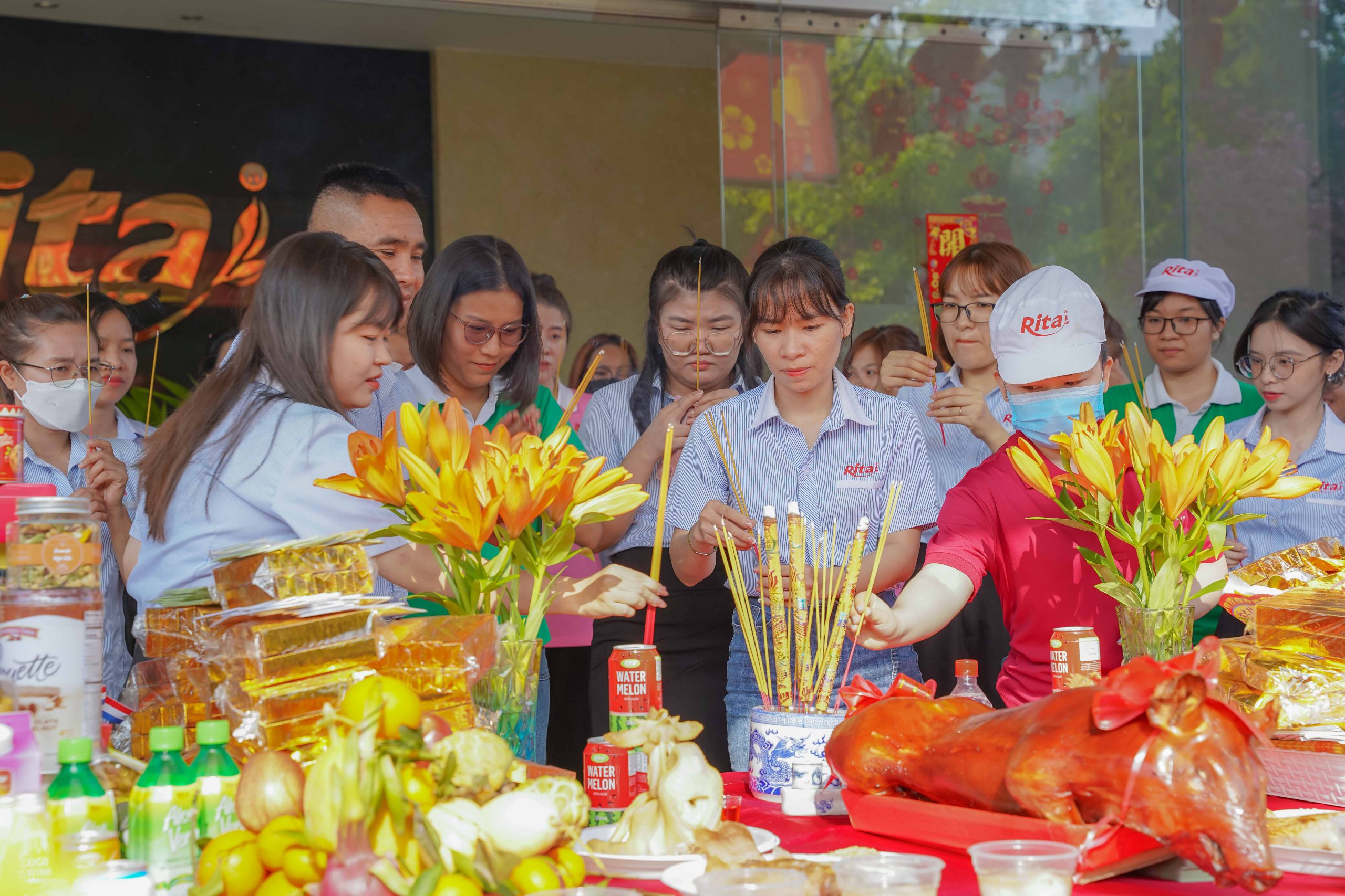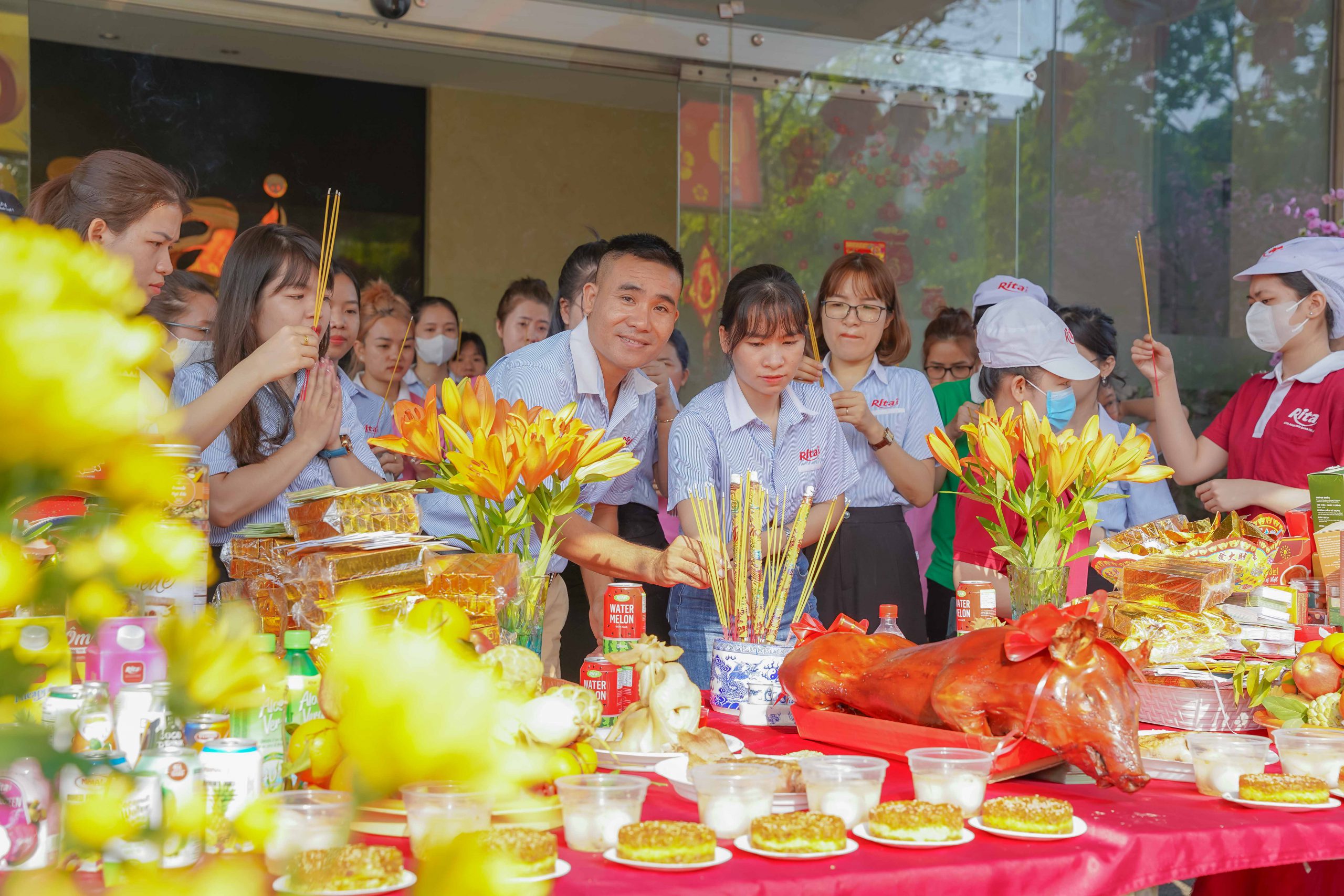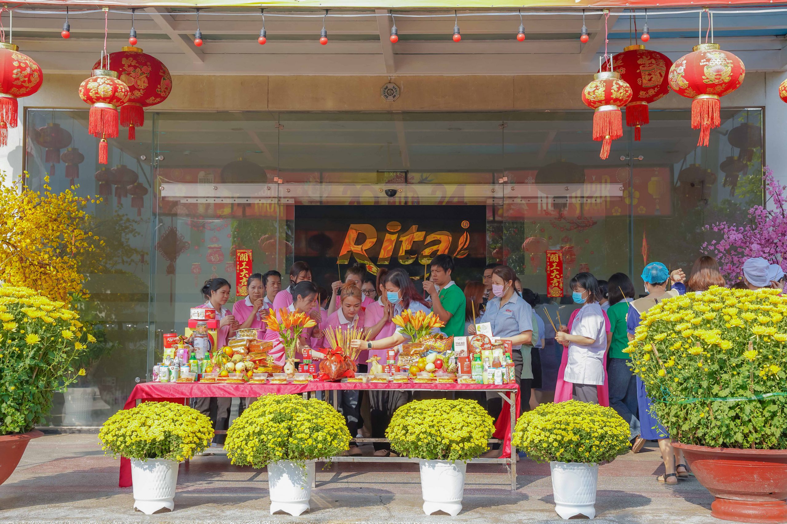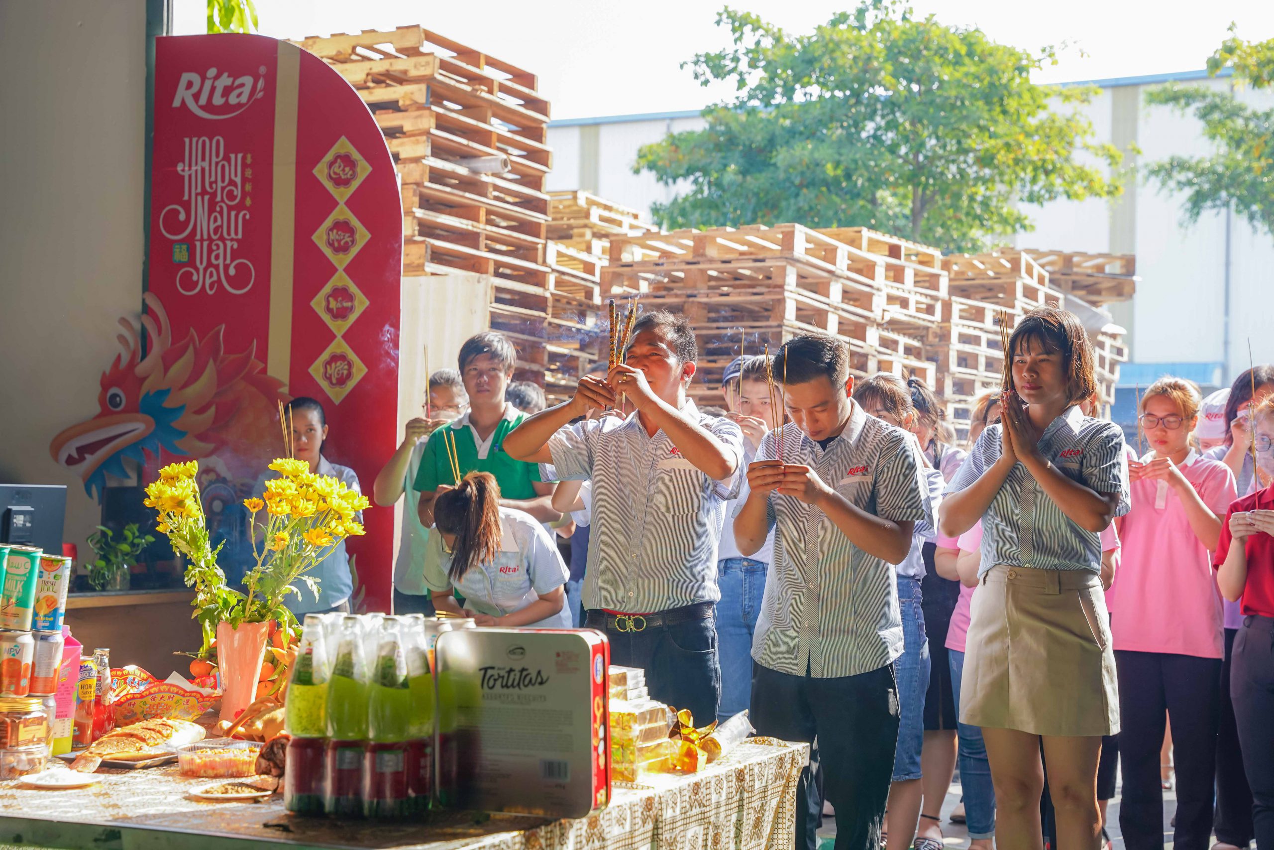 Ngày đầu khai công, công ty Rita đã chuẩn bị lễ vật đầy đủ, thành tâm nguyện cầu năm mới Giáp Thìn đại cát đại lợi, thành công rực rỡ. Đại diện lãnh đạo công ty đã gởi lời chúc năm mới dồi dào sức khỏe, hạnh phúc và bình an đến mọi nhân viên.