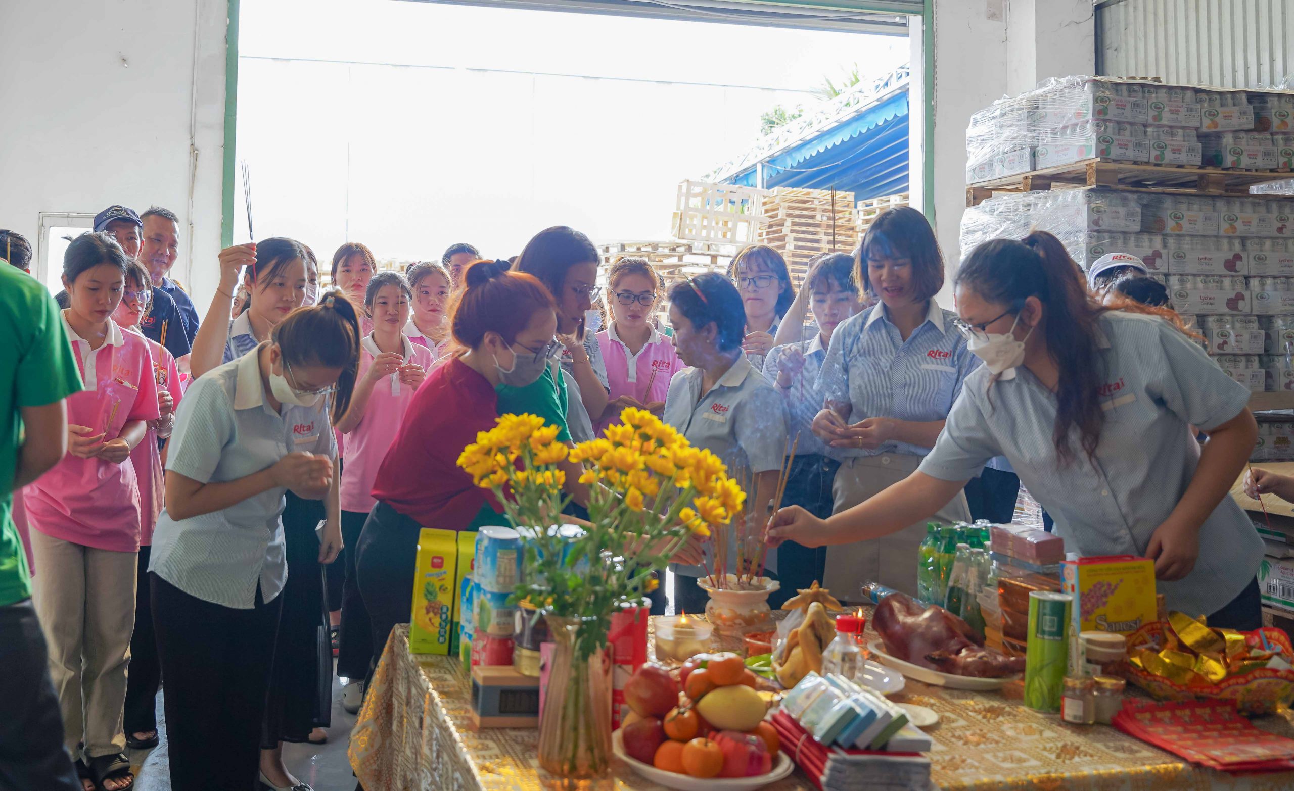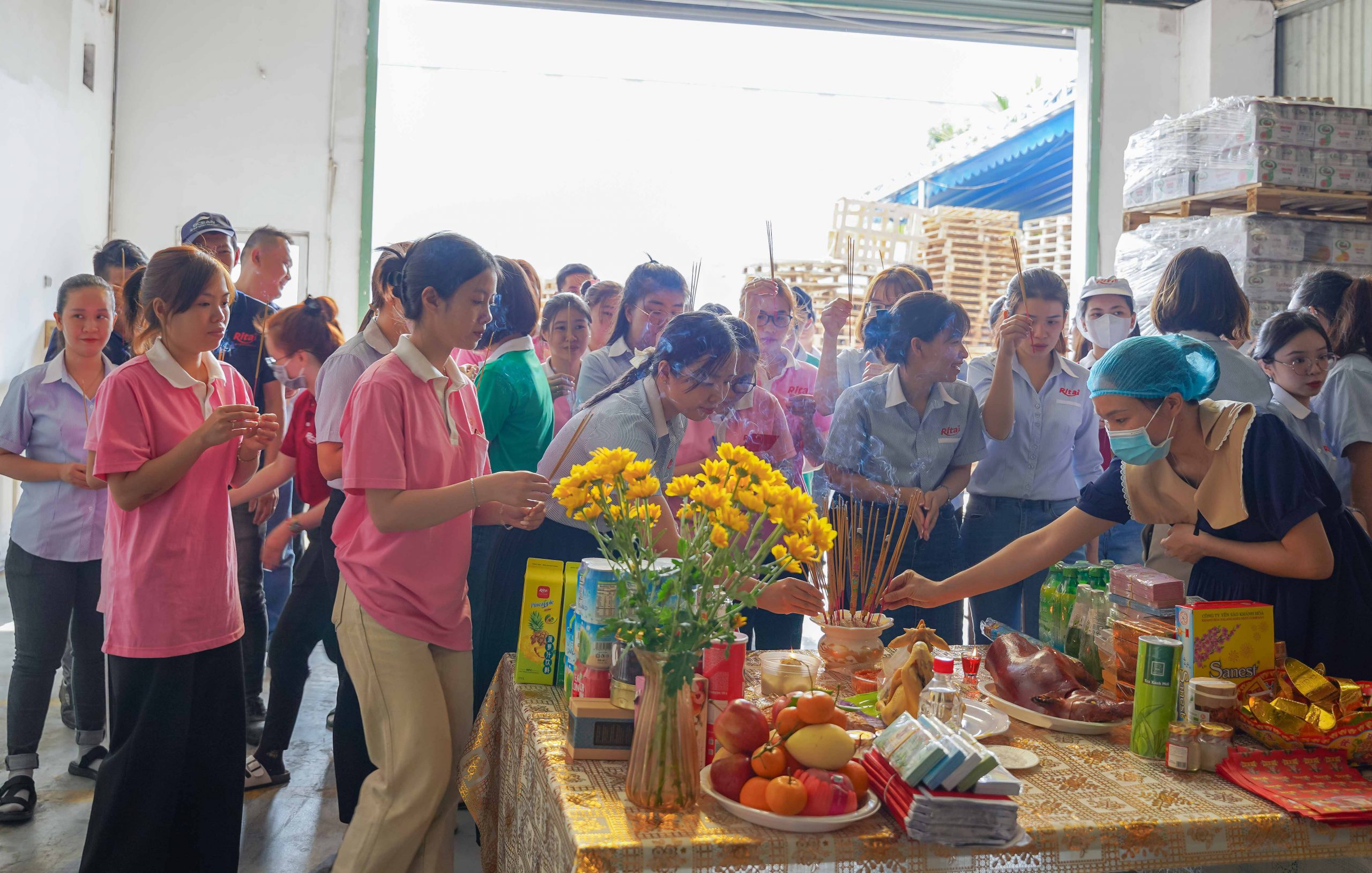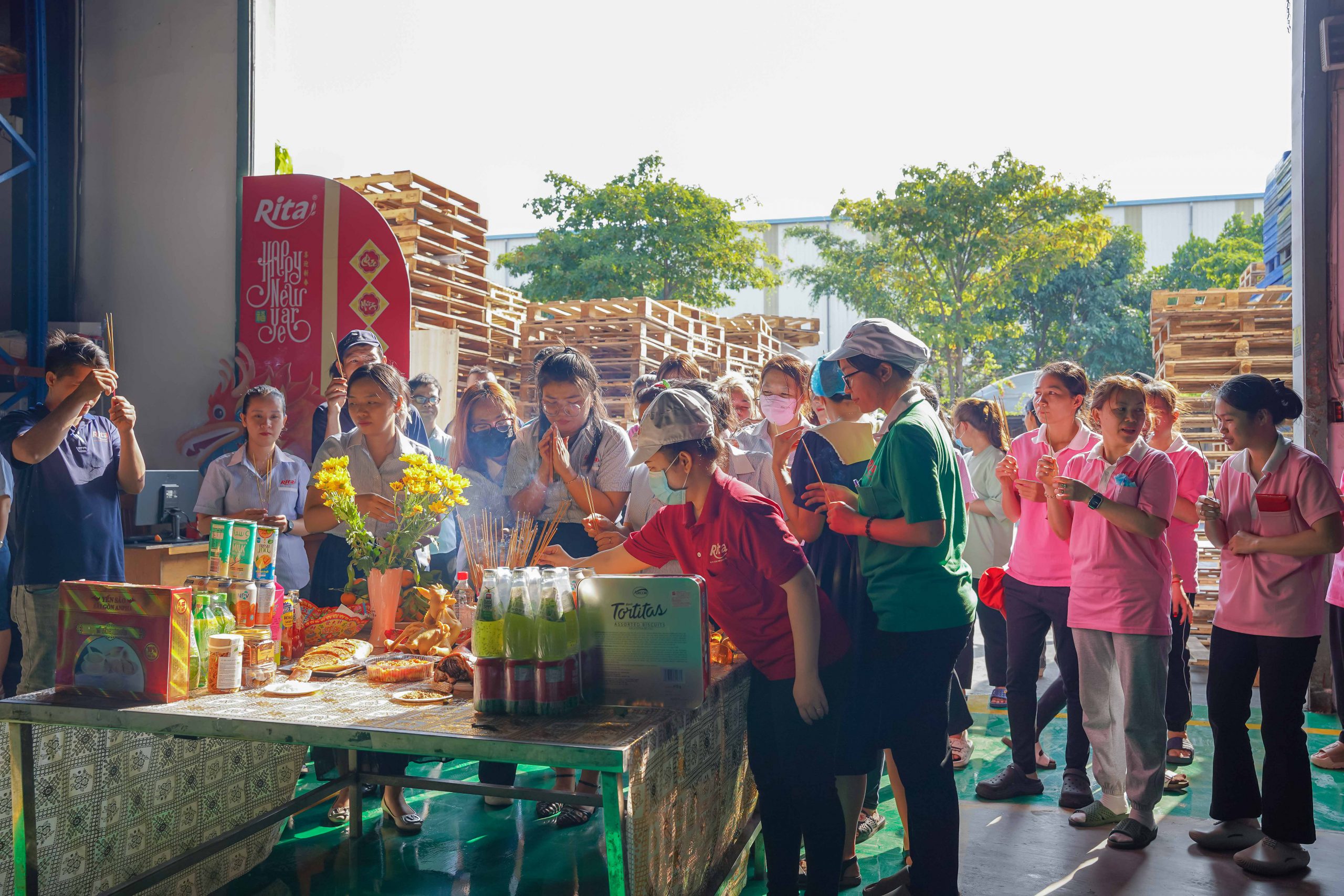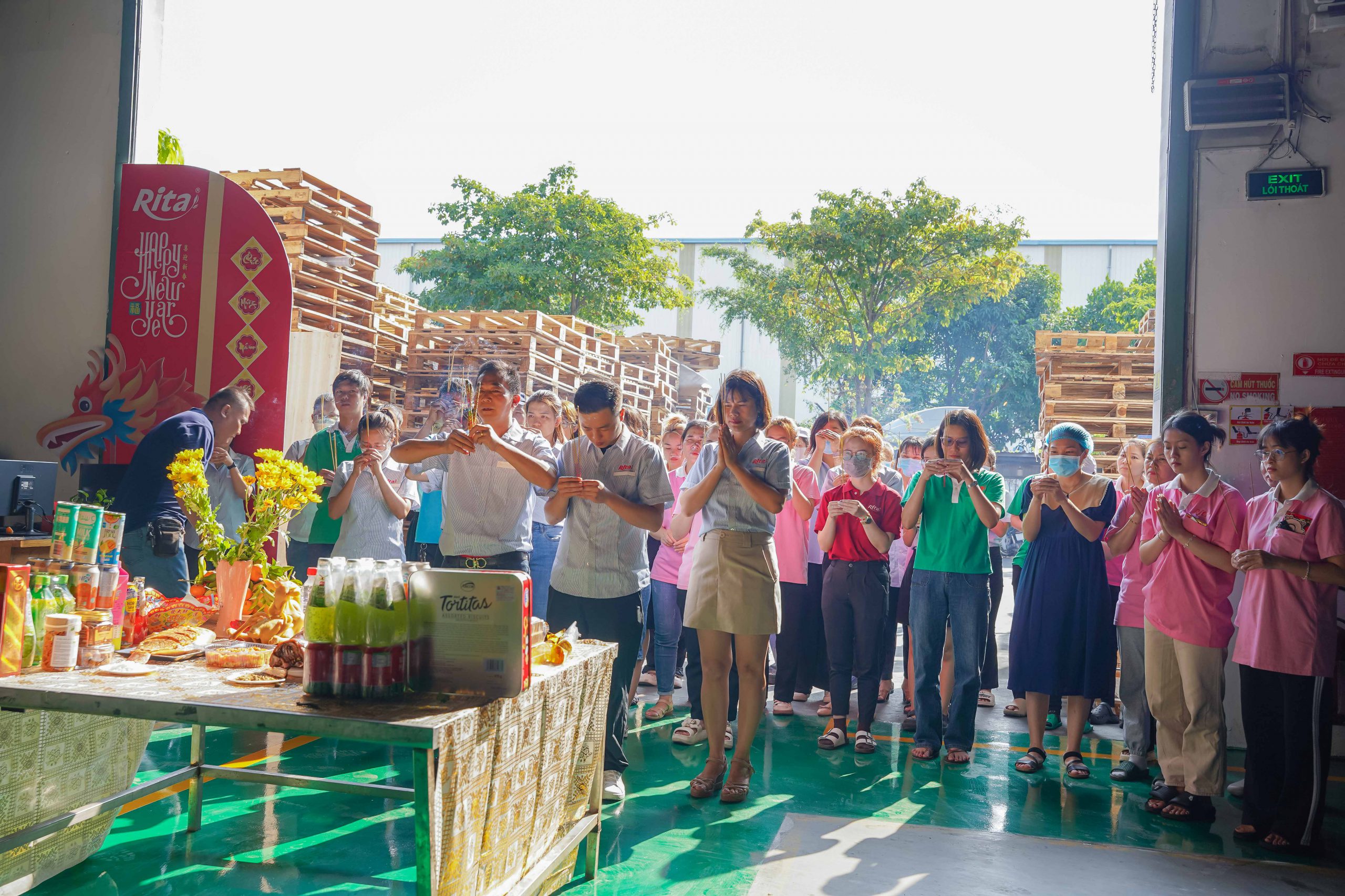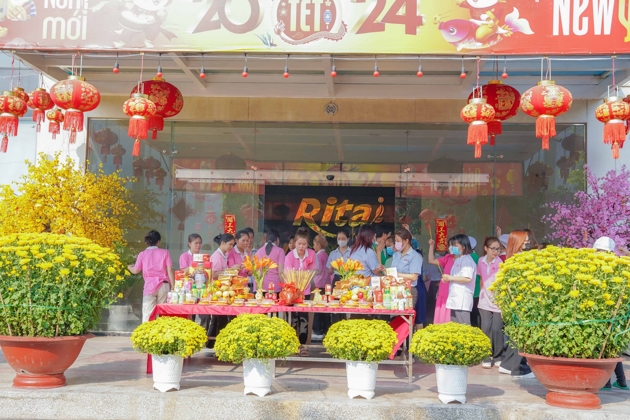 Ngày đầu khai công, công ty Rita đã chuẩn bị lễ vật đầy đủ, thành tâm nguyện cầu năm mới Giáp Thìn đại cát đại lợi, thành công rực rỡ. Đại diện lãnh đạo công ty đã gởi lời chúc năm mới dồi dào sức khỏe, hạnh phúc và bình an đến mọi nhân viên.