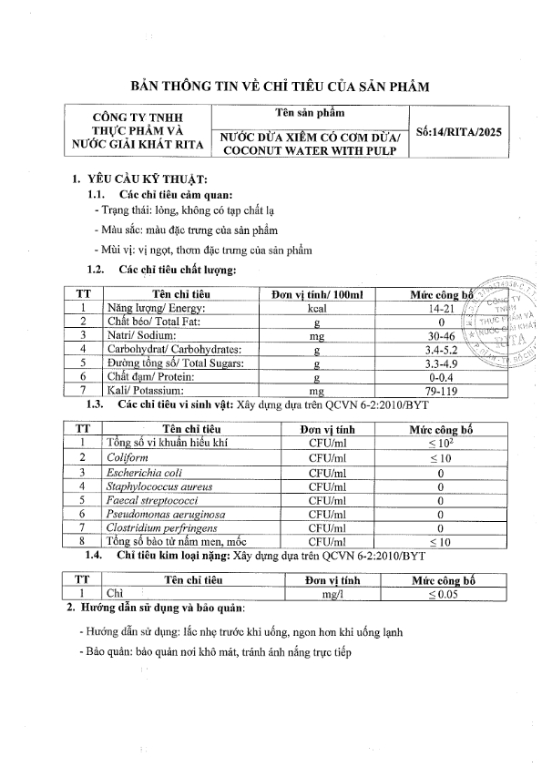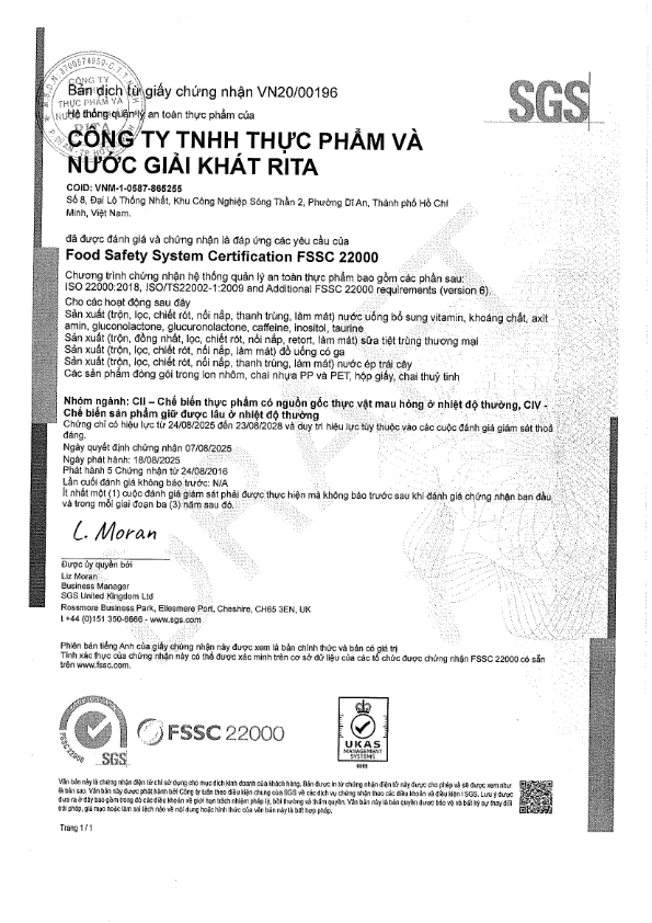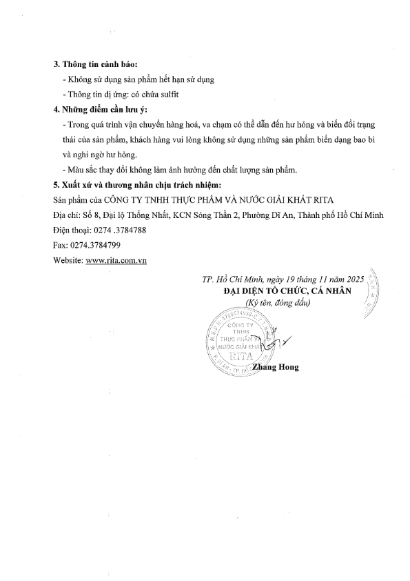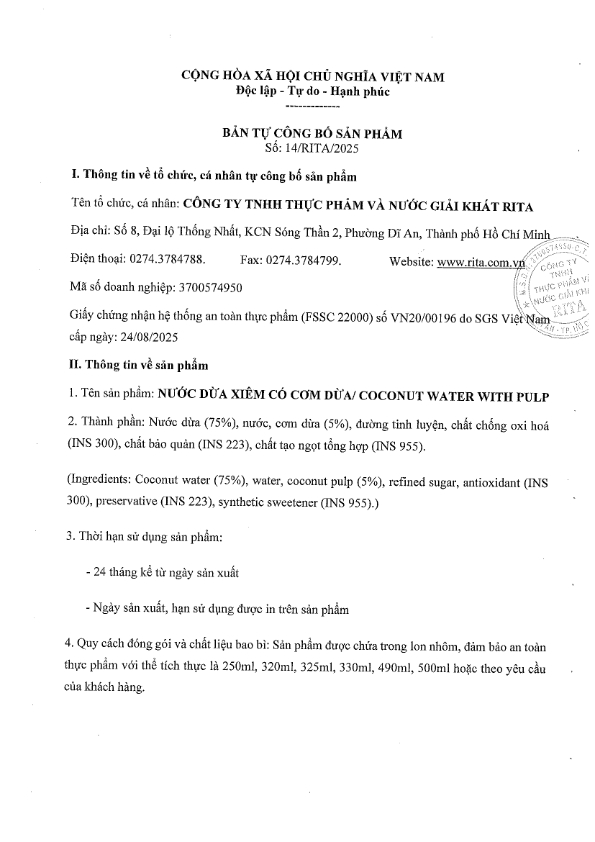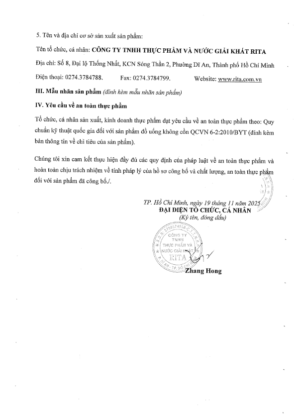 Nhà Sản Xuất Nước Giải Khát RITA