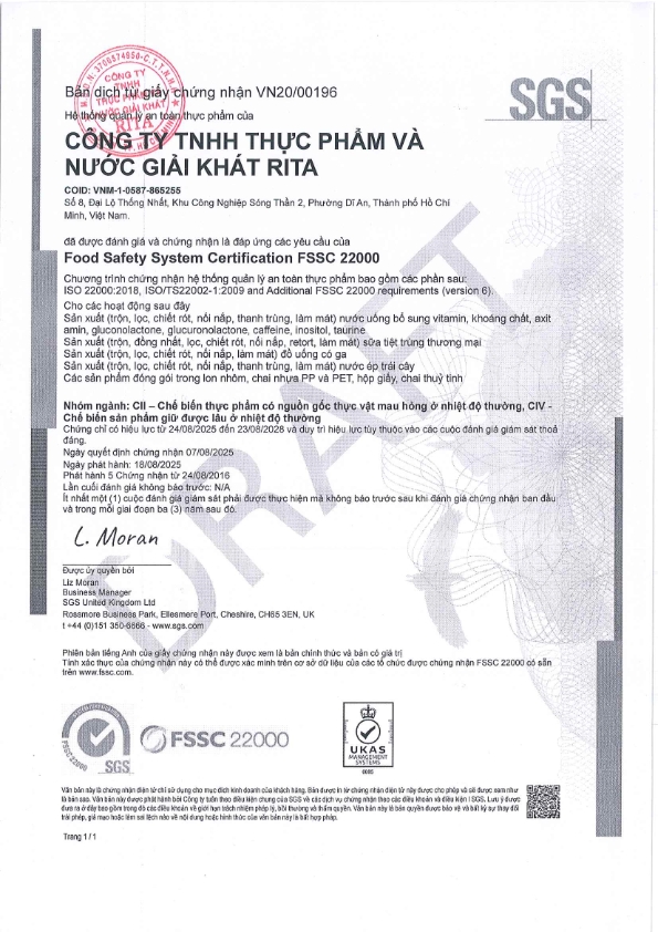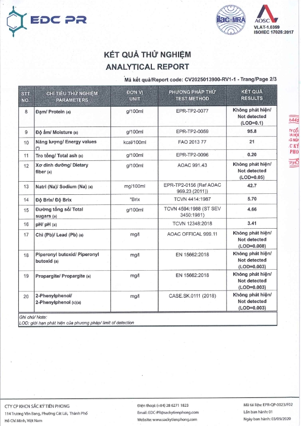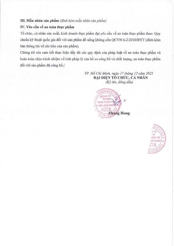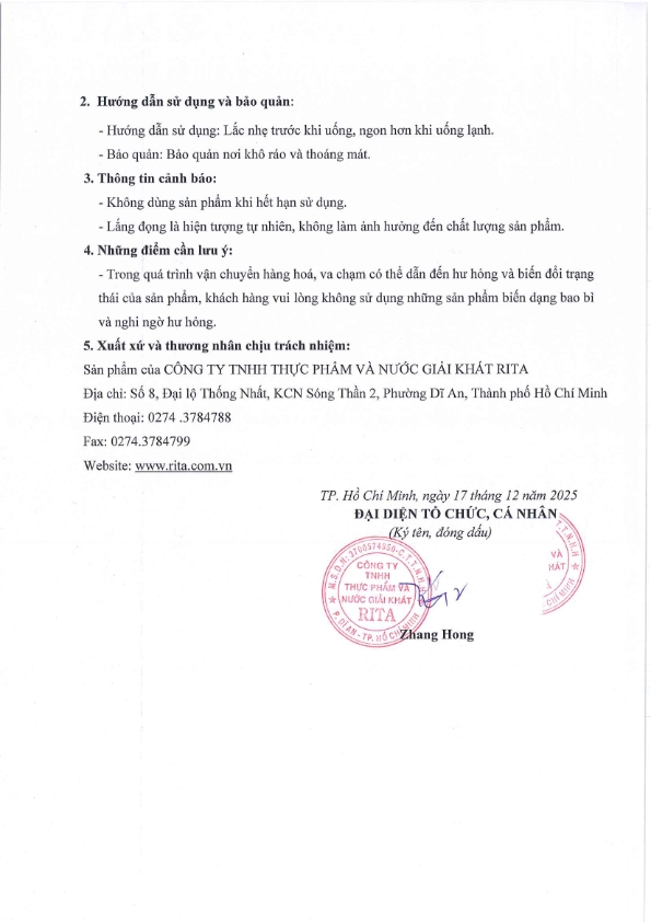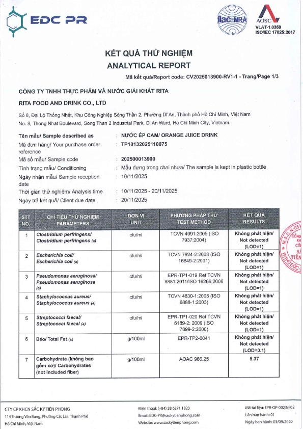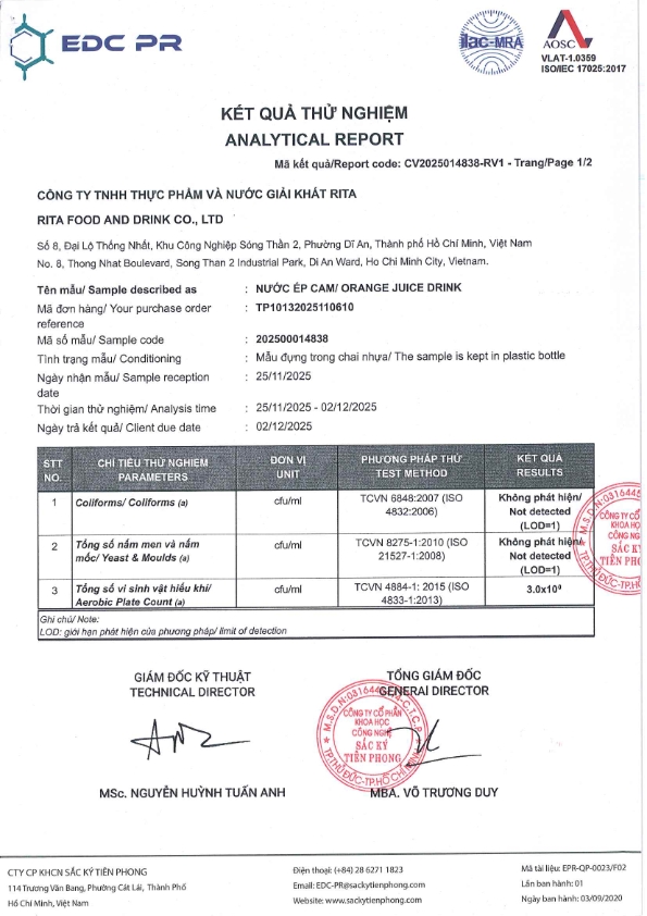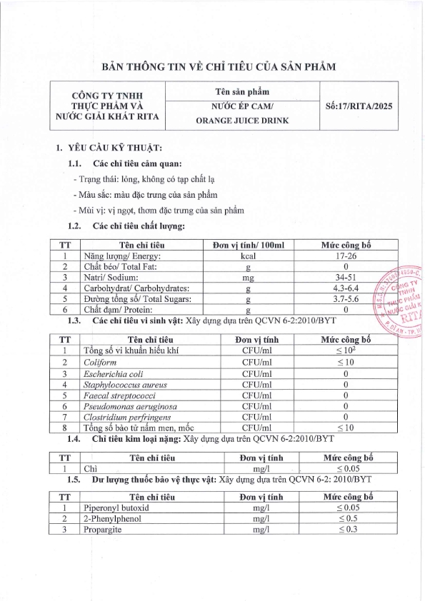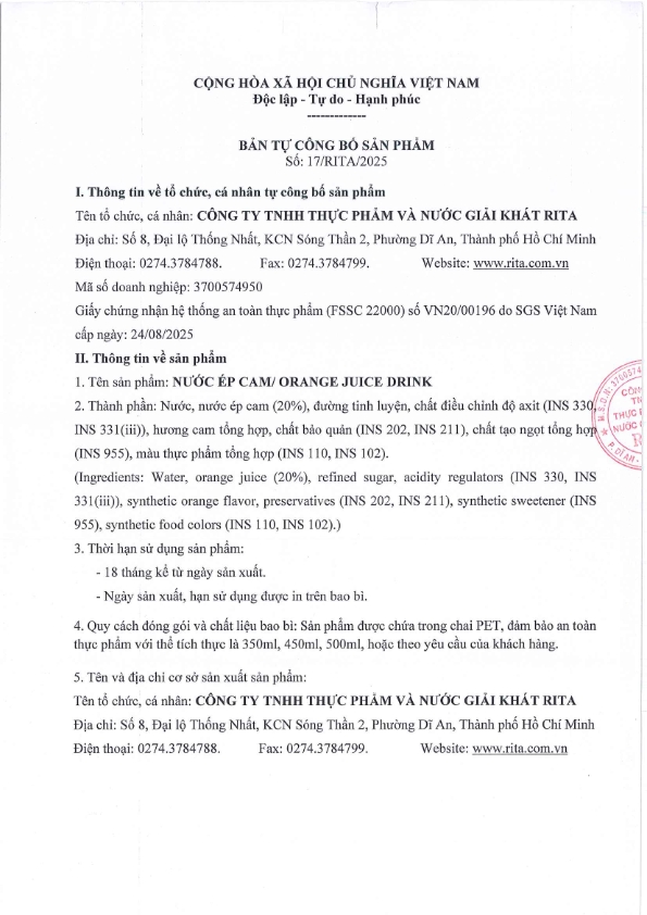 BẢN TỰ CÔNG BỐ SẢN PHẨM: NƯỚC ÉP CAM-ORANGE JUICE DRINK