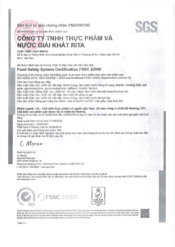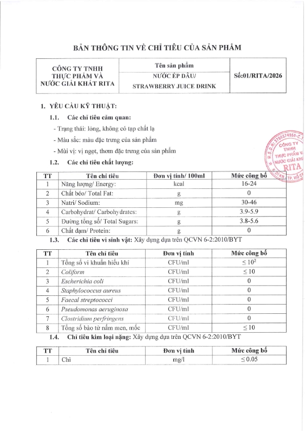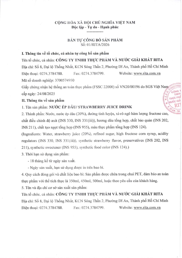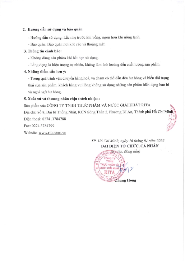 Nhà Sản Xuất Nước Giải Khát RITA