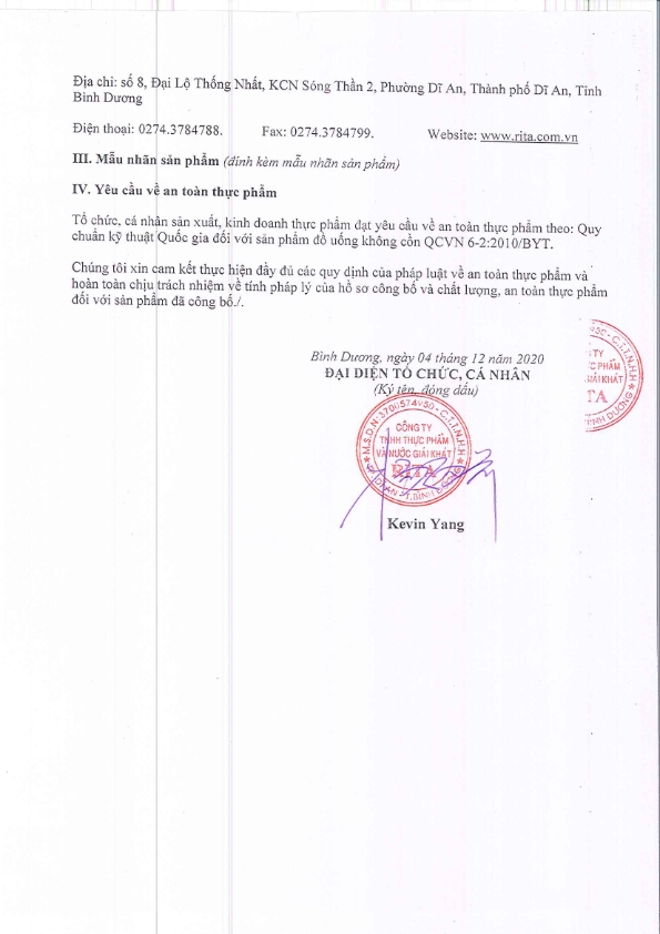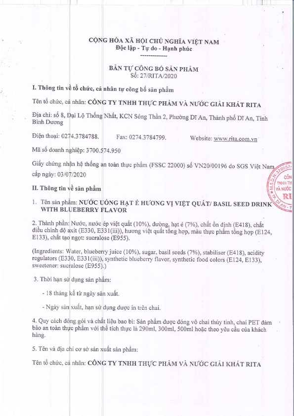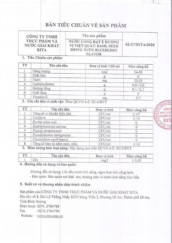 Nhà Sản Xuất Nước Giải Khát RITA