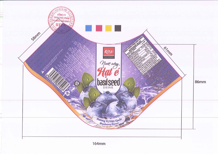 Tên sản phẩm: NƯỚC UÓNG HẠT É HƯƠNG VỊ VIỆT QUÁT/ BASIL SEED DRINK WITH BLUEBERRY FLAVOR