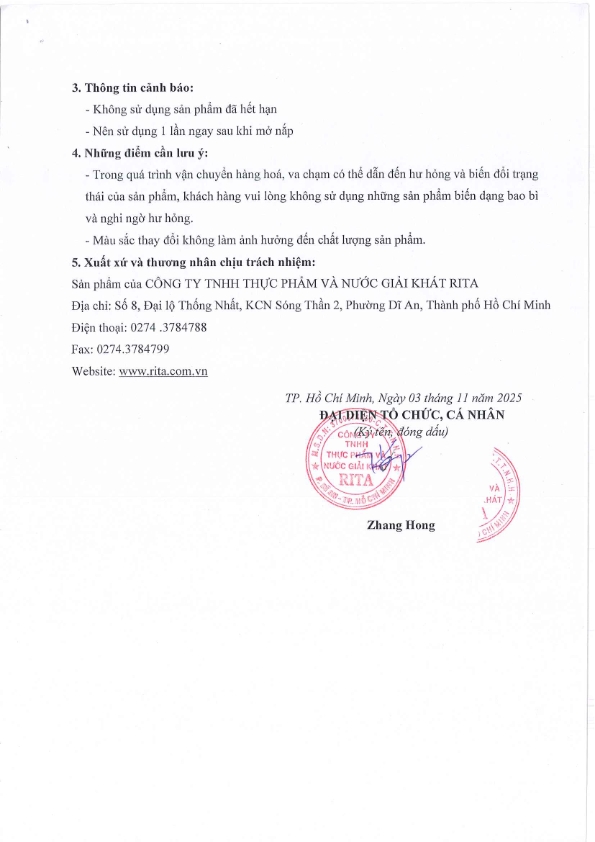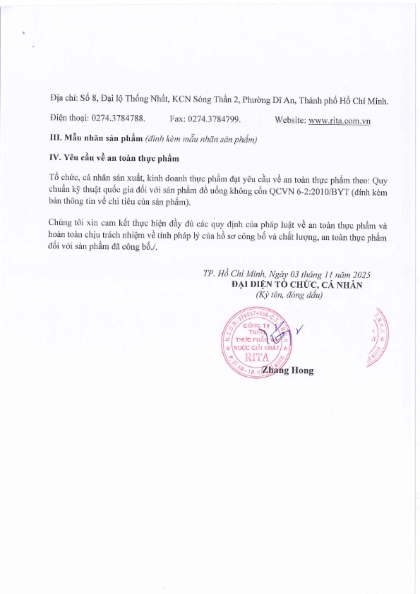 Nhà Sản Xuất Nước Giải Khát RITA