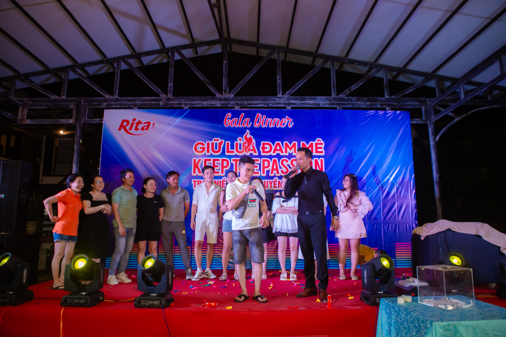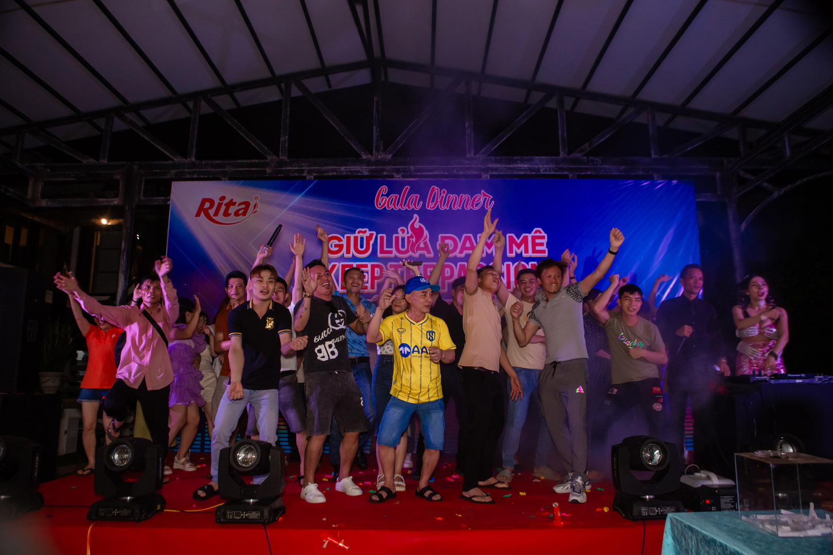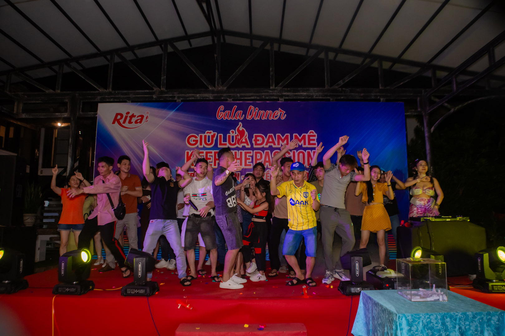 Đêm gala dinner và buffet BBQ luôn là tâm điểm của bất kì chuyến du lịch nào, Rita cũng không ngoại lệ. Âm nhạc sôi động, gameshow vui nhộn, quà tặng ngập trời đã đốt cháy không khí buổi tiệc. Mọi người quẩy hết mình, tạm thời bỏ qua công việc còn dang dở, tiếng cười và niềm vui còn mãi.