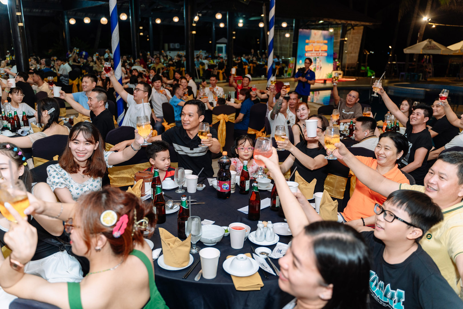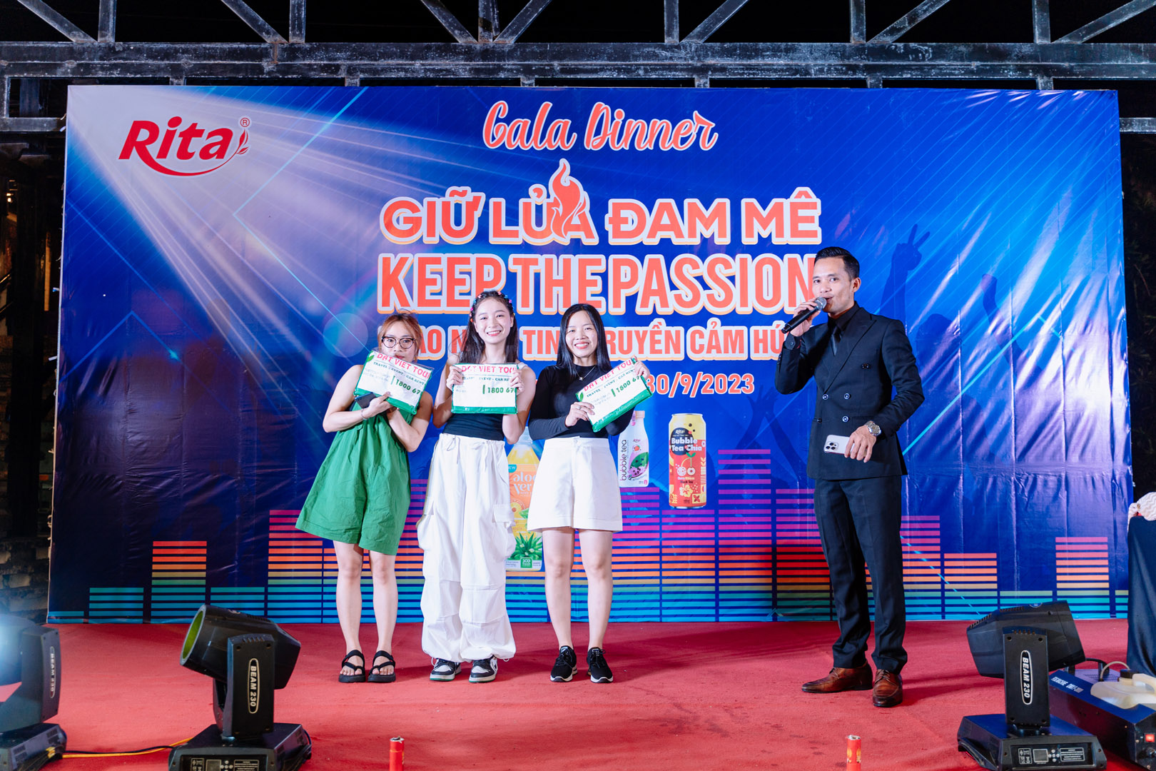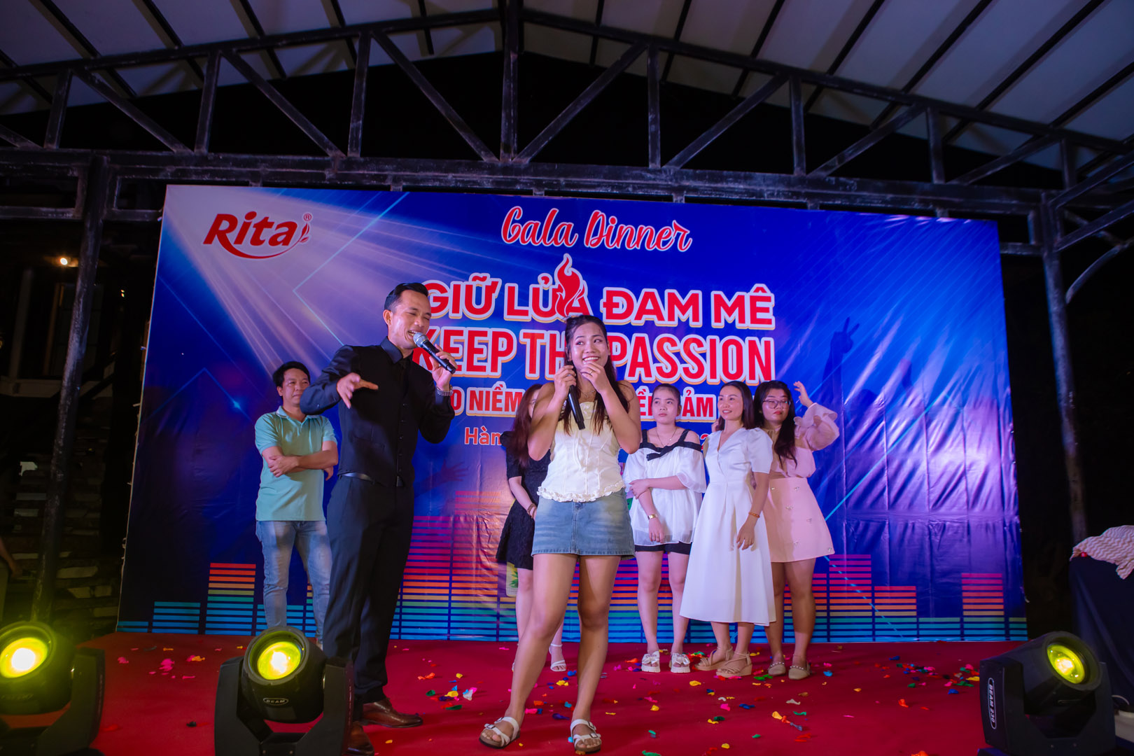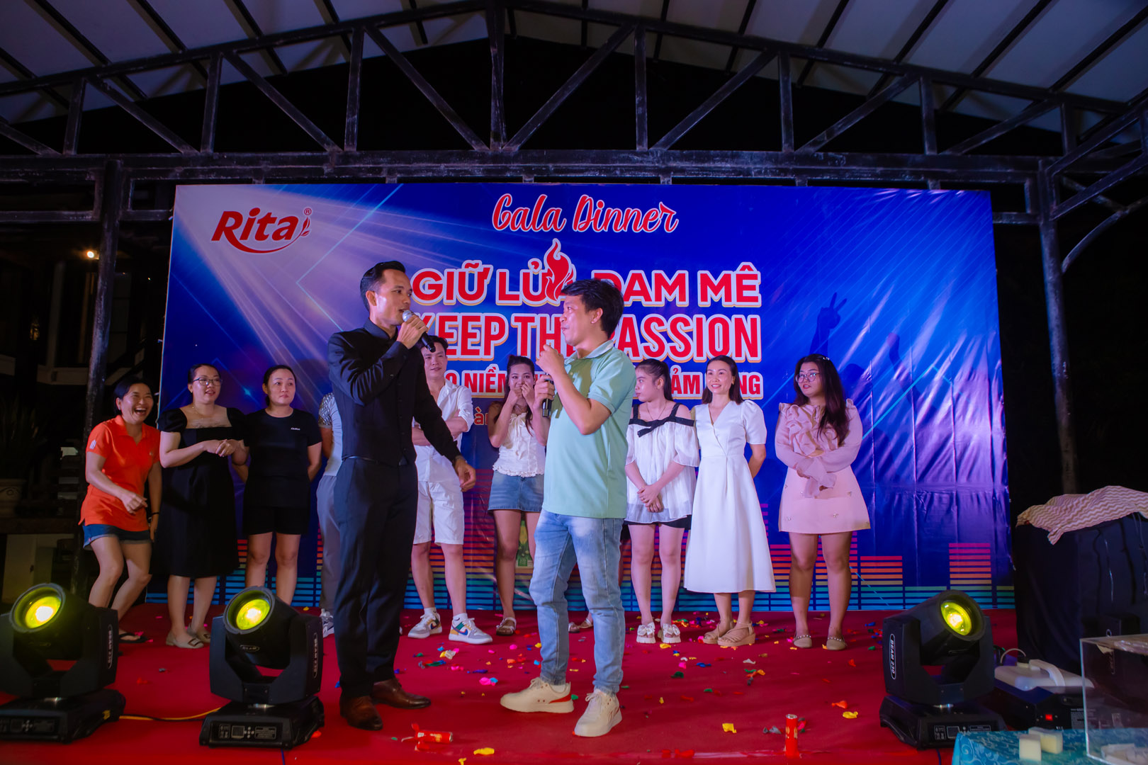 Đêm gala dinner và buffet BBQ luôn là tâm điểm của bất kì chuyến du lịch nào, Rita cũng không ngoại lệ. Âm nhạc sôi động, gameshow vui nhộn, quà tặng ngập trời đã đốt cháy không khí buổi tiệc. Mọi người quẩy hết mình, tạm thời bỏ qua công việc còn dang dở, tiếng cười và niềm vui còn mãi.