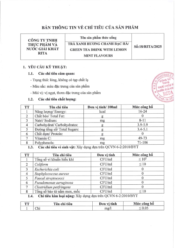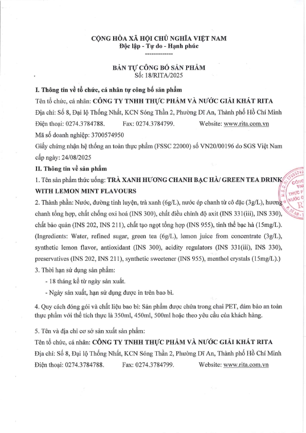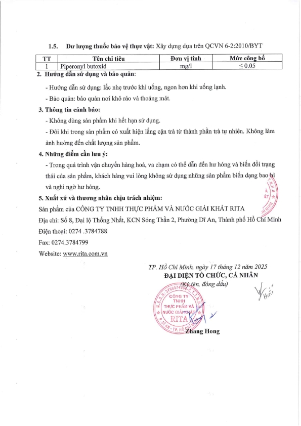 Nhà Sản Xuất Nước Giải Khát RITA