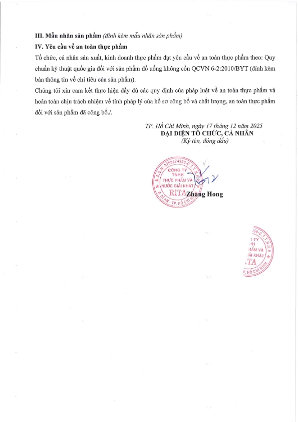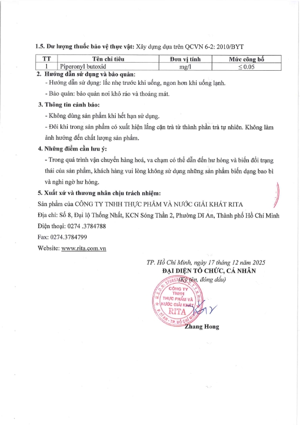 Nhà Sản Xuất Nước Giải Khát RITA